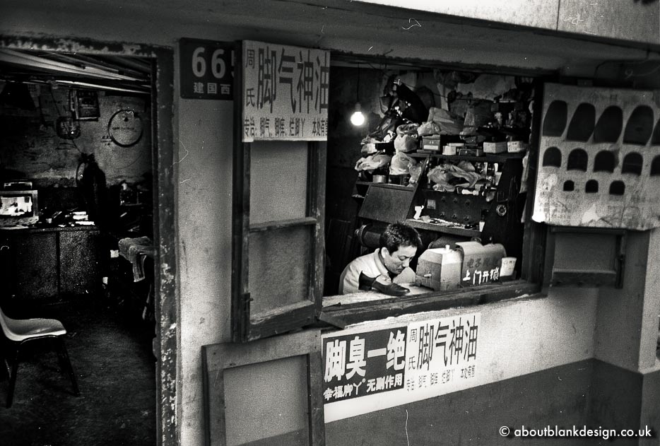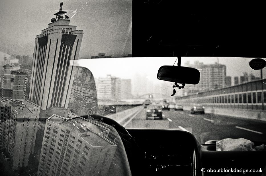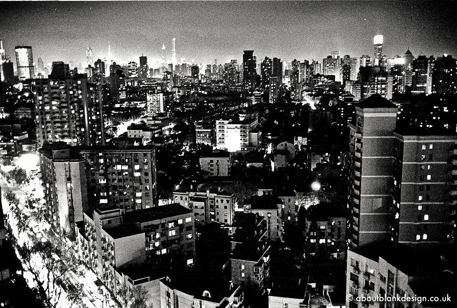 The obvious out-of-my-hotel-room picture. This one nicely resembles the one I took out of a Nottingham Holiday Inn Express in 2007. Trust me. What you see though is Pudong at the upper left, with the whole French Concession district below. Kodak 400TX via Leica M3, 35mm Elmar |