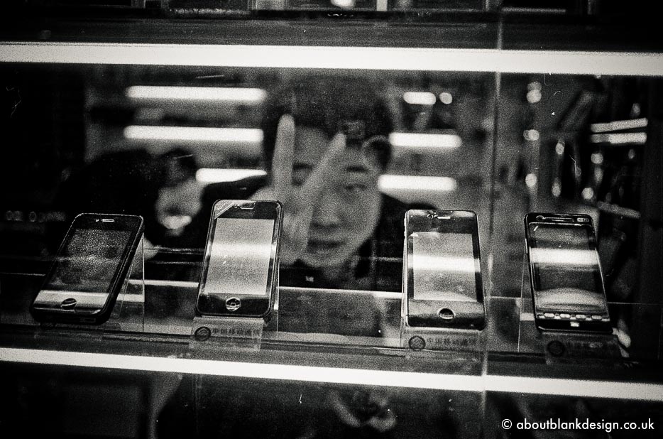 Fake iPhones and a happy seller. Theres several quality grades. These ones are the cheapest, expect about 30 quid for these. I don't know if they work, he told me they even work in Uzbekistan. Kodak 400TX via Leica M3, 35mm Elmar. |